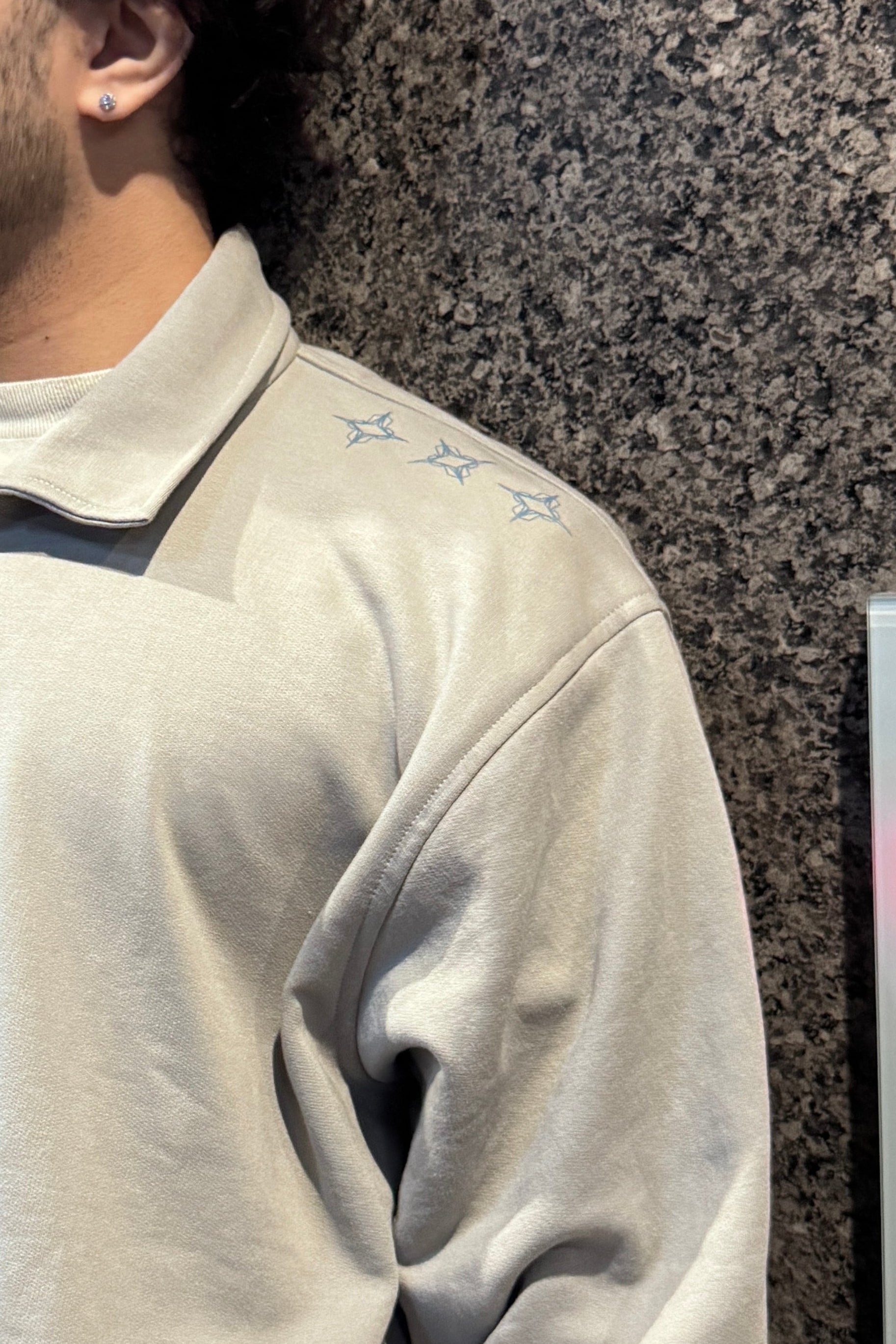 Minimal print on the chest, shoulder and back